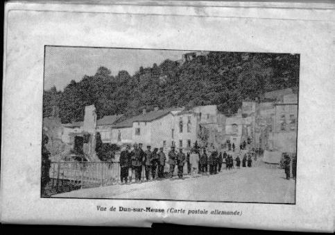 Un soir on saisit une auto en avant de Vilosnes, contenant deux officiers allemands; ils sont naturellement prestement expédiés dans l'autre monde; on trouve sur eux un ordre relatif à l'attaque d'un point de la Meuse après construction d'une passerelle. Les artilleurs y filent à toute allure, le pont est construit et quand les boches l'ont franchi, on démolit tout et on les écrase. A la fin les gaillards se décident à passer plus en aval entre Dun et Stenay .