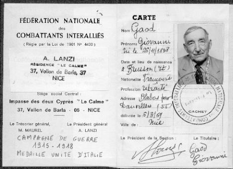 Giovanni GAOD=mon grand père maternel ( unité d'Italie 1915-1918) |